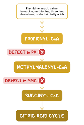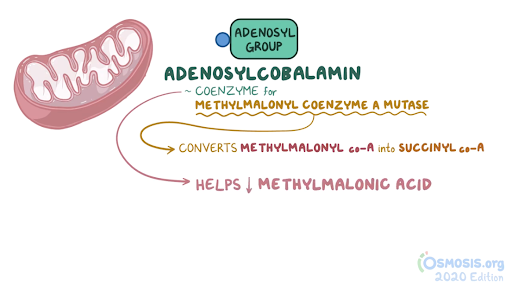 2. A 2-week-old female neonate is under evaluation in the neonatal ICU for an episode of a seizure. Since starting breastfeeding, she has been irritable, has been feeding poorly, and has had several episodes of vomiting. She was born at 41 weeks of gestation to a 25-year-old woman following an uncomplicated spontaneous vaginal delivery. She has been exclusively breastfed from birth. Temperature is 36.4°C (97.5°F), respiratory rate is 67/min, and pulse is 155/min. Physical examination reveals a somnolent and lethargic infant. Abdominal examination is unremarkable. Neurological examination reveals diffuse hypotonia and somnolence with response to painful stimulation. Laboratory evaluation reveals wide anion gap metabolic acidosis and elevated levels of propionyl CoA in urine. Which of the following vitamins are required for the function of the enzyme that is most likely deficient in this patient?