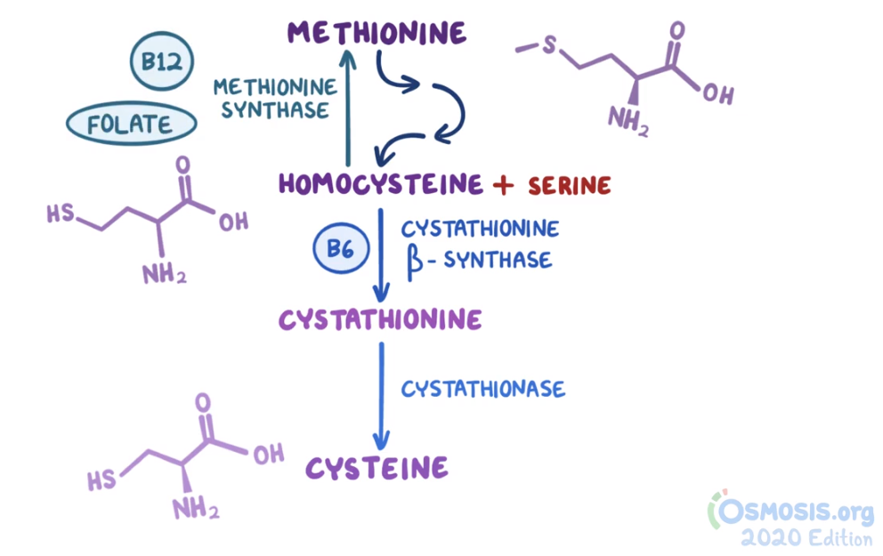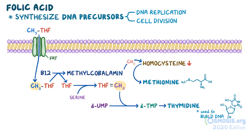 29. A 68-year-old woman comes to the clinic with generalized fatigue over the last 2 months. She has also noticed painful mouth ulcers. She states she has been consuming a “tea and toast” diet for the past 6 months in an effort to be “healthier.” Her other medical conditions include type 2 diabetes mellitus, hypertension, hypercholesterolemia and psoriasis. Her current medications include lisinopril, methotrexate, hydrochlorothiazide, NPH insulin and atorvastatin. Temperature is 37.0°C (98.6°F), pulse is 94/min, respirations are 18/min, and blood pressure is 135/95 mmHg. She is oriented to time, place and person. The patient has conjunctival pallor. Neurologic examination shows normal motor strength but decreased touch and pain sensation in the bilateral lower extremities. Complete blood count reveals a hemoglobin of 9 g/dL. HbA1c level is 9.4%. Thyroid function tests are within normal limits. Serum homocysteine levels are elevated, and serum methylmalonic acid levels are within normal limits. Peripheral smear reveals hypersegmented neutrophils and macrocytosis. A deficiency of which of the following vitamins are responsible for this patient’s symptoms?