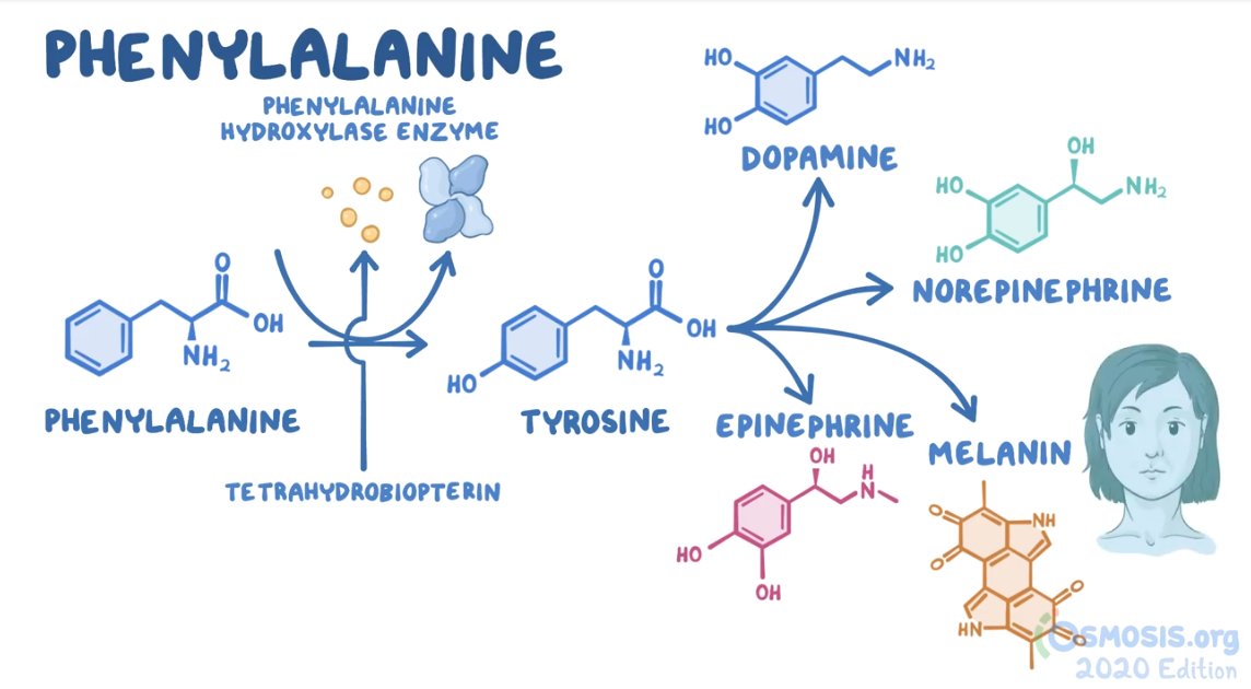 23. A 6-month-old girl is brought to the emergency department with seizures. The episode lasted less than a minute and terminated without any interventions. Her parents have not noticed a change in stools, excessive crying, or a fever. Her birth was unremarkable; however, the parents state she has not been able to sit up or roll over on her own yet. The family immigrated from Nigeria 2 months ago. Her weight is less than the 5th percentile for her age. Temperature is 36.4°C (97.5°F), pulse is 145/min, and respiratory rate is 34/min. Head circumference is significant for microcephaly. Physical examination reveals eczema over the chest. Motor examination is normal. Abdominal examination is unremarkable. A genetic disorder is suspected. Laboratory evaluation reveals a deficiency of tetrahydrobiopterin. Which of the following amino acids is most likely essential in this patient given her condition?