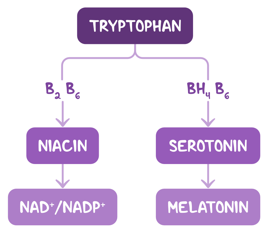 15. A 15-year-old boy is brought in by his parent to the clinic for evaluation of a skin rash over his chest and arms for the past 2 weeks. The patient has noticed that the rash becomes pruritic and painful to touch when he goes outside to play soccer. He also complains of loose stools over the last week. Three months ago, he was diagnosed with latent tuberculosis and was started on isoniazid. He and his family immigrated from India 9 months ago. Temperature is 37.0°C (98.6°F), pulse is 74/min, respirations are 16/min, and blood pressure is 115/75 mmHg. BMI is 20 kg/m2. Physical examination reveals scaly erythematous patches and hyperpigmentation of the arms, chest and skin below the knees. Motor strength is 5/5 in all four extremities. Sensation is intact throughout. Which of the following amino acids is a precursor of the vitamin that is most likely deficient in this patient?