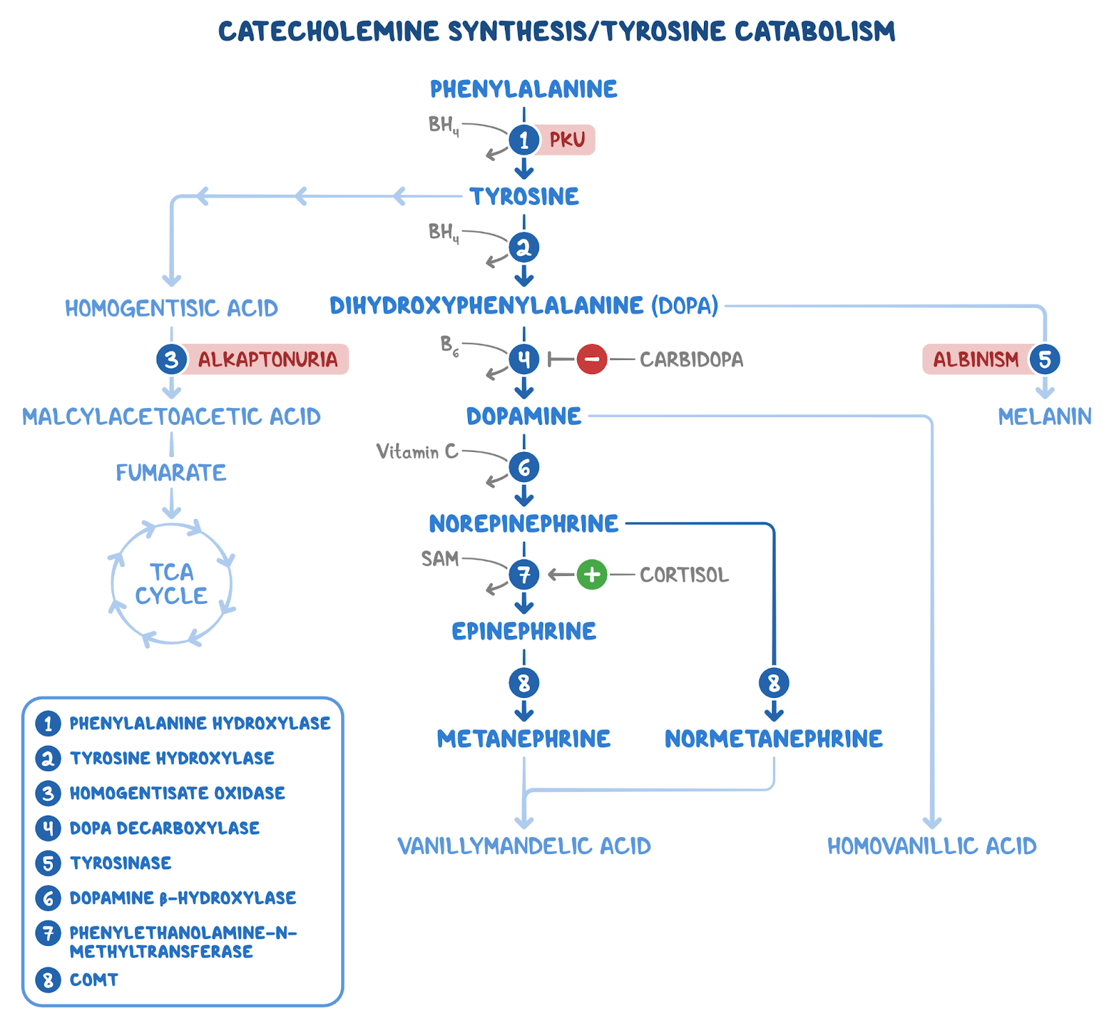 5. A 24-hour-old male neonate undergoes neonatal screening. He was born at 40 weeks gestation to a 32-year-old woman with Graves disease following an uncomplicated spontaneous vaginal delivery. Temperature is 36.4°C (97.5°F). Head circumference is significant for microcephaly. Motor examination is normal. Abdominal examination is unremarkable. Laboratory evaluation reveals a deficiency of phenylalanine hydroxylase. Which of the following metabolites are likely to be decreased in this patient?