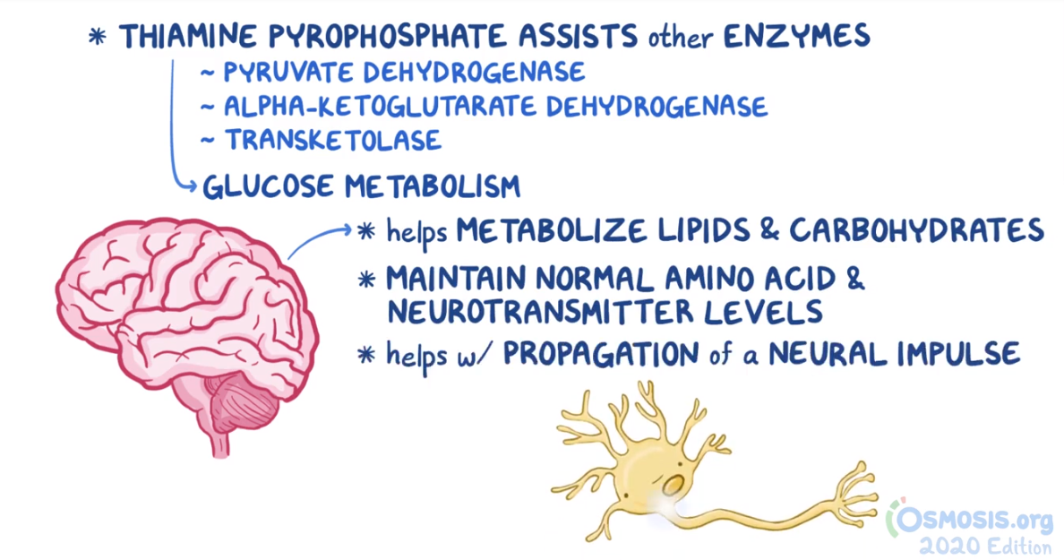 30. A 32-year-old woman in the intensive care unit is brought to the attention of the on-call physician for acute mental status changes shortly after a nurse initiated dextrose supplementation. She was admitted to the hospital 1 week ago for severe acute pancreatitis. Past medical history includes anorexia nervosa and 2 hospital admissions in the past year for alcohol withdrawal. Temperature is 37.0°C (98.6°F), pulse is 92/min, respirations are 18/min, and blood pressure is 125/85 mmHg. BMI is 17.5 kg/m2. She is confused and disoriented to time, place and person. Pupils are equal and reactive, and horizontal nystagmus is elicited on lateral gaze. Fundoscopy is normal. Motor strength is 5/5 in the upper extremities and 2/4 in bilateral lower extremities. Deep tendon reflexes of the knee and ankle are 1+ bilaterally. Rapid glucose test is 70 mg/dL. Laboratory investigations are noncontributory. Which of the following enzymes is likely inhibited considering the most likely diagnosis in this patient?