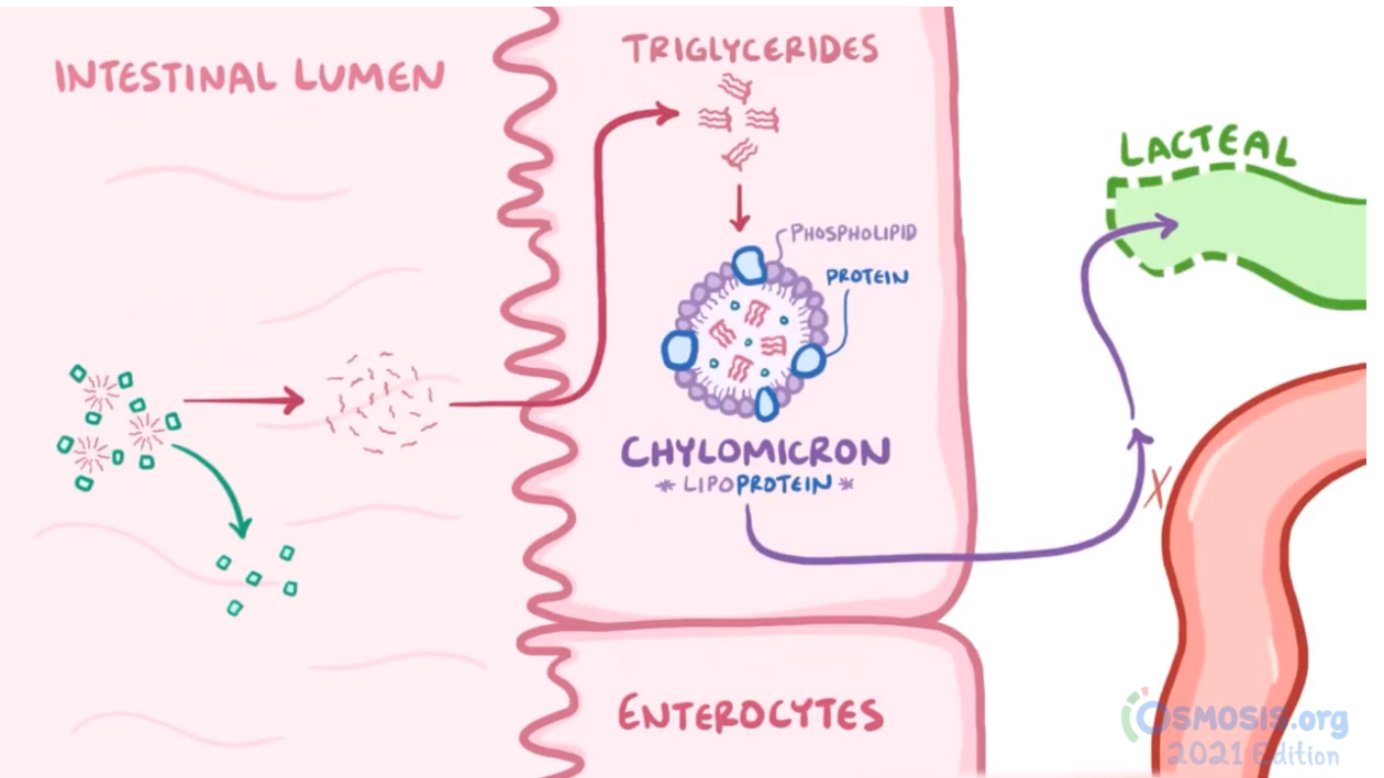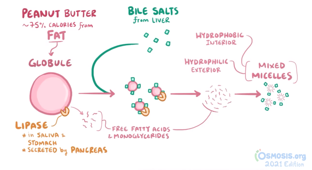 4. A study is done on the processes of fat digestion and absorption in order to develop novel pharmacologics that can help prevent diseases associated with increased levels of fat and lipids in the blood. Which of the following is true regarding the digestion and absorption of fats and lipids?