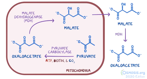 16. A 25-year-old woman comes to the clinic due to myalgia, loss of appetite and a skin rash. She noticed a progressively worsening skin rash around her eyes, nose and mouth over the course of the last 4 weeks. She has not had a fever, and the rash is not painful or pruritic. Five months ago, she began an intense fitness regimen with a strict diet, which includes eating multiple egg whites everyday, as well as a protein shake every morning, in which she puts several raw eggs. Temperature is 37.0°C (98.6°F), pulse is 80/min, respirations are 20/min, and blood pressure is 125/85 mmHg. BMI is 19 kg/m2. Physical examination reveals macular patches around her eyes, nose and mouth. The physician suspects a nutritional deficiency. The cause of this patient’s symptoms is determined to be a vitamin deficiency that acts as a cofactor for the enzyme acetyl-CoA carboxylase. Which of the following additional biochemical processes uses the deficient vitamin as a cofactor?